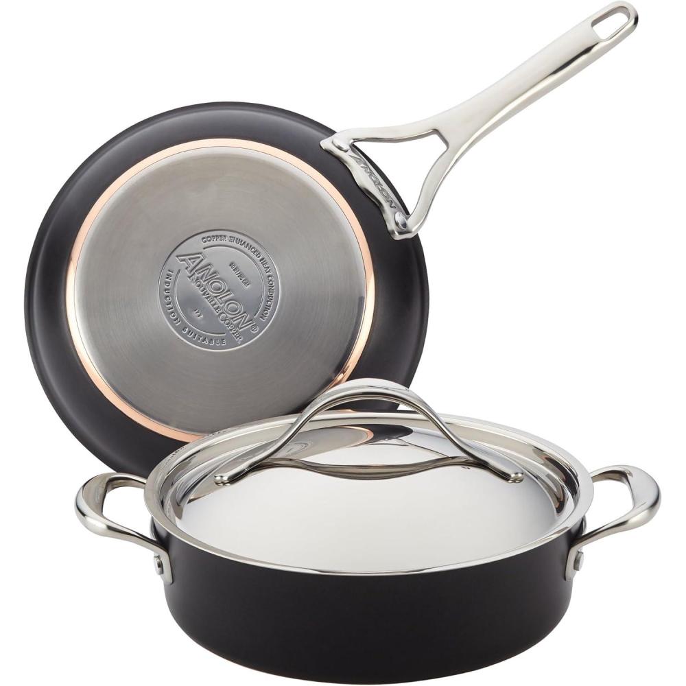 Copper performance, sleek nonstick surfaces, and lasting durability. Essential pots and pans designed for the creative and versatile home chef feature ultra-tough hard-anodized aluminum and boast an induction plate with copper midlayer for fast, even heating on any stovetop. Exclusive Unity Surface® with flat, easy-clean rivets complements the Infinity Slide⢠Nonstick System of triple layer, sapphire reinforced, PFOA-free nonstick, and the entire set is oven safe to 500°F for stove to oven to table performance and presentation. Â