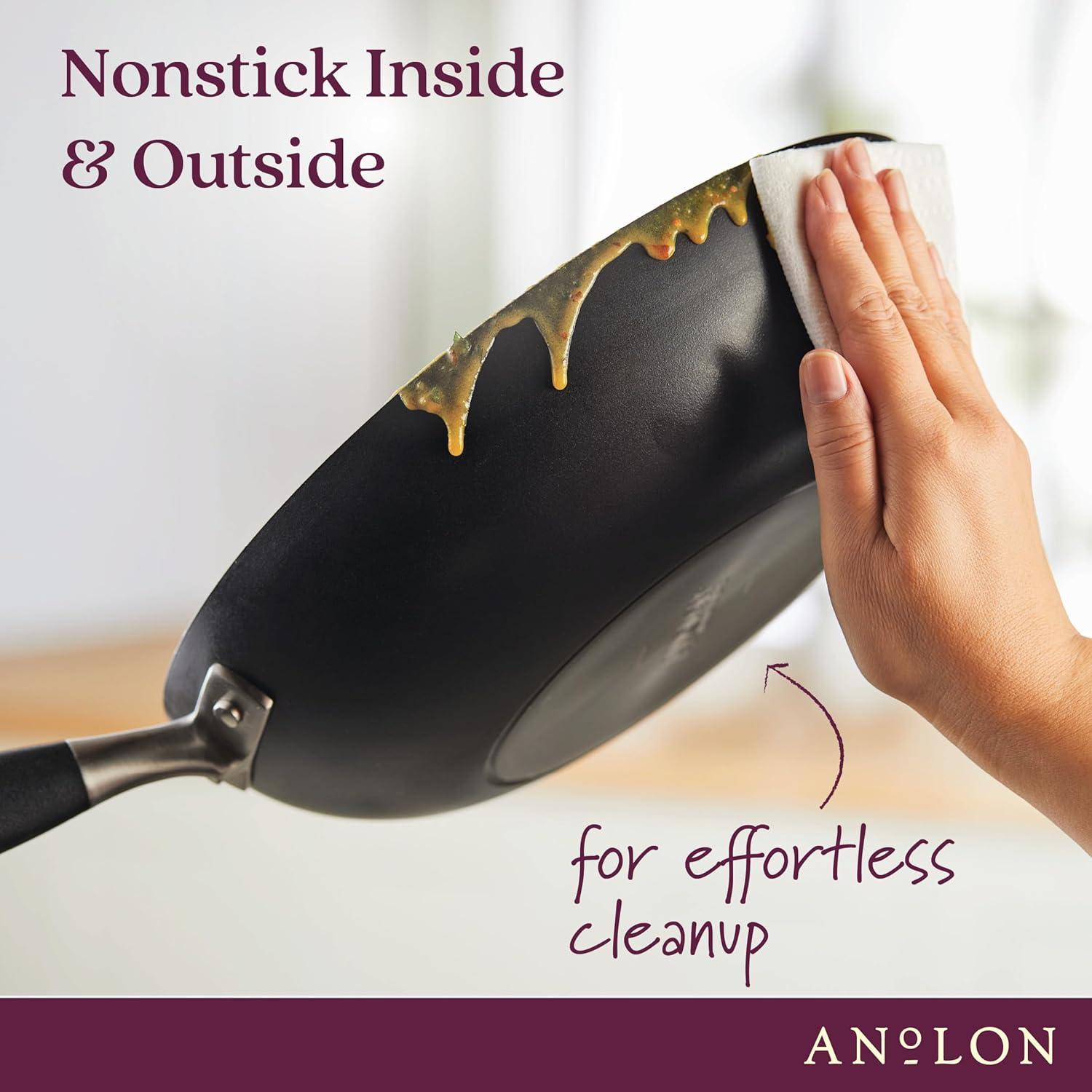 Aspiring home chefs, your next step to sublime cooking starts here. Anolon Advanced Home provides dependability and versatility with one of the very best nonsticks on the market in this carefully crafted kitchen essential designed to outperform, outlast, and outshine your current cookware. Engineered for fast, uniform heating, this hard-anodized ultimate pan is twice as hard as stainless steel for durability that lasts. Designed with sloped sides, chef pans make it easy to flip and turn a wide range of large meals. Oven safe to 400°F, this large family pan features Infinity Slide technology for one of the longest lasting and smoothest-gliding cookware surfaces you can buy. If you expect more from your nonstick, welcome to the sublime cooking experience of Anolon Advanced Home.