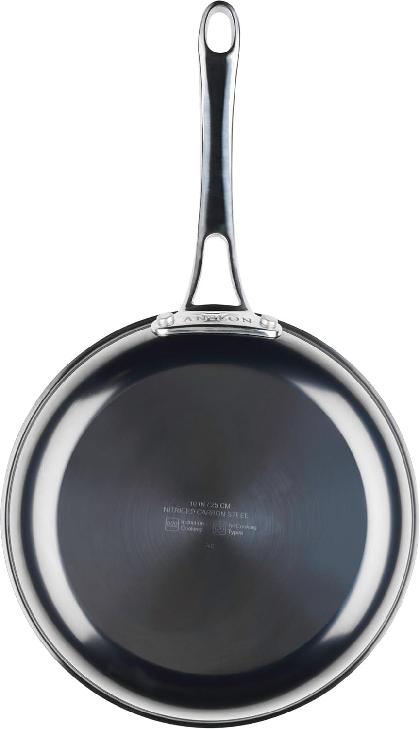 All the power of cast iron and none of the baggage. Anolon EverLast N2 Carbon Steel delivers the high-heat searing and unbeatable durability of cast iron on a natural nonstick surface–without the weight, seasoning ritual, or upkeep. Mirror-polished for effortless food release and nitrided for rust resistance, this 10 inch frying pan is beautiful from the moment you open the box through every stage of its evolution. With every meal, this pan transforms: building a natural nonstick surface that grows more resilient each time you cook. Start with fatty foods like bacon or chicken thighs to nourish the patina, and soon you’ll notice you need less oil for delicate foods like eggs. Lighter than cast iron, yet tough enough to handle searing heat up to 1,000 degrees F on the grill or pizza oven, it’s designed for any stovetop, including induction, with an ergonomic stay-cool handle for security and comfort. Simply wash with soap and water, and watch Anolon EverLast Carbon Steel's patina change over time, reflecting your personal culinary journey. For nearly four decades, Anolon has been a premium cookware brand for home cooks who take pride in their craft. Anolon EverLast Carbon Steel carries that legacy forward with cookware that’s as beautiful as it is enduring, built to be an heirloom.