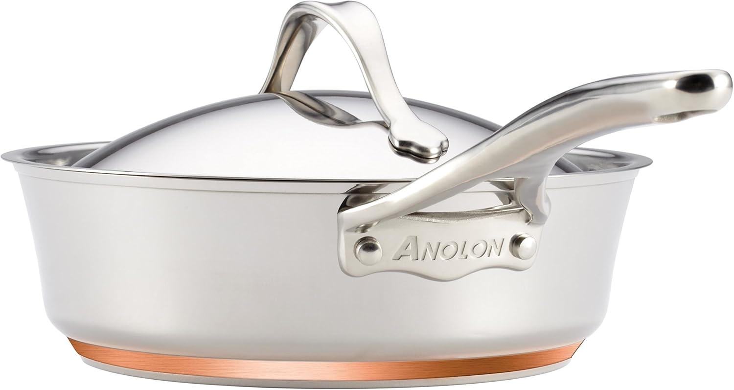 imageAnolon Nouvelle Copper FryingFry PanSkillet Set 95 Inch Stainless Steel and 1025 Inch Hard Anodized NonstickCookware Set 11 Piece
