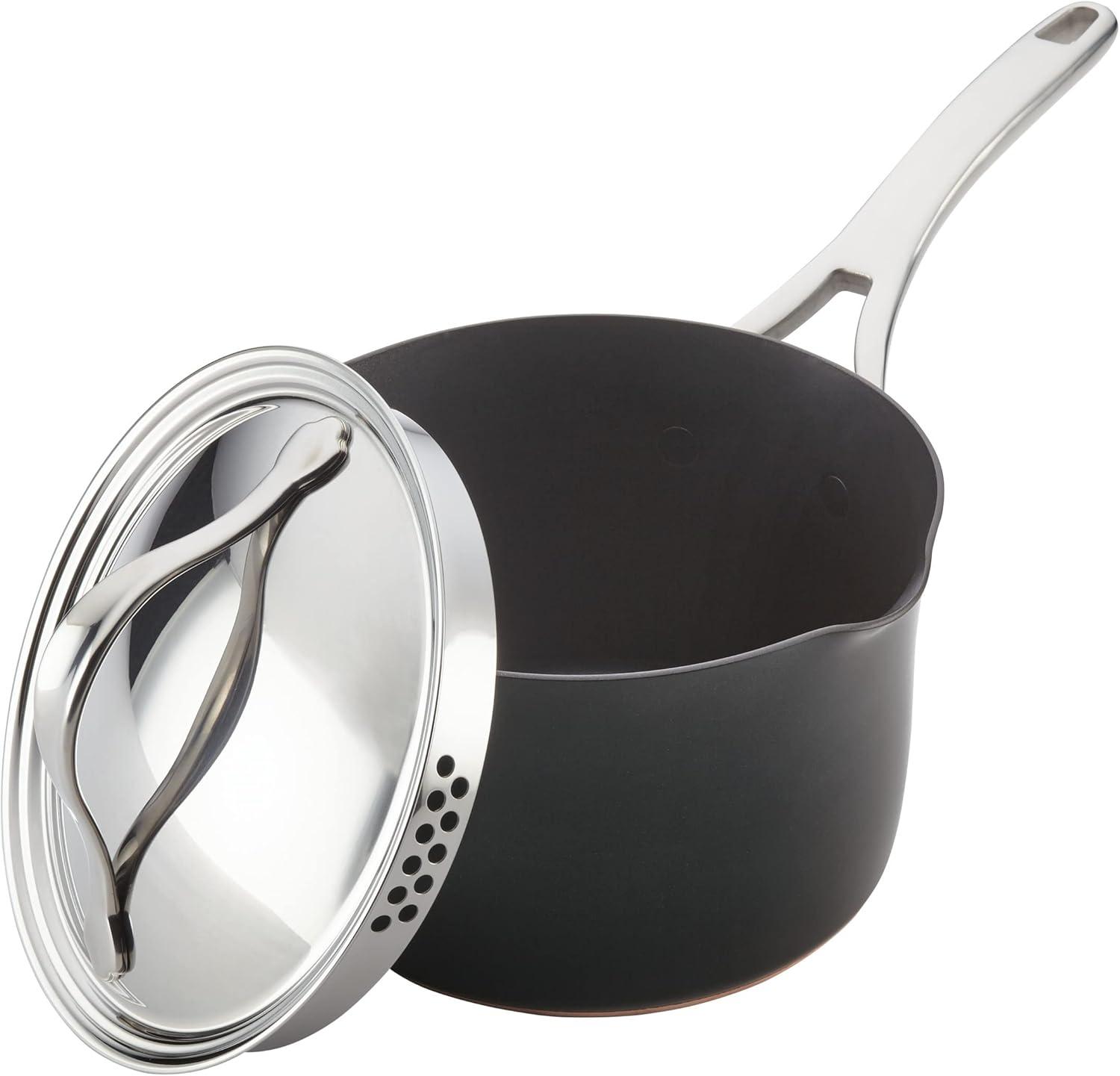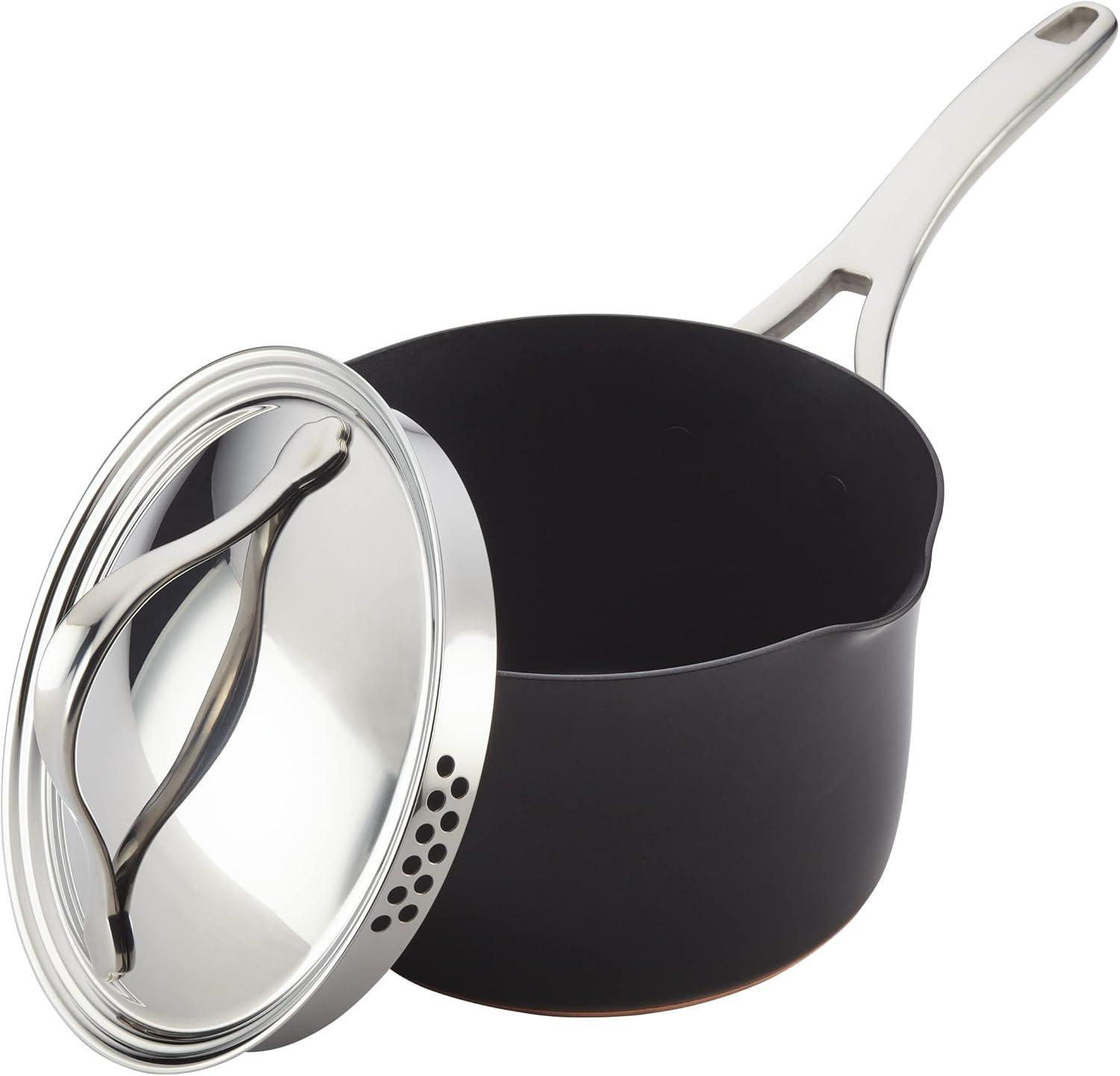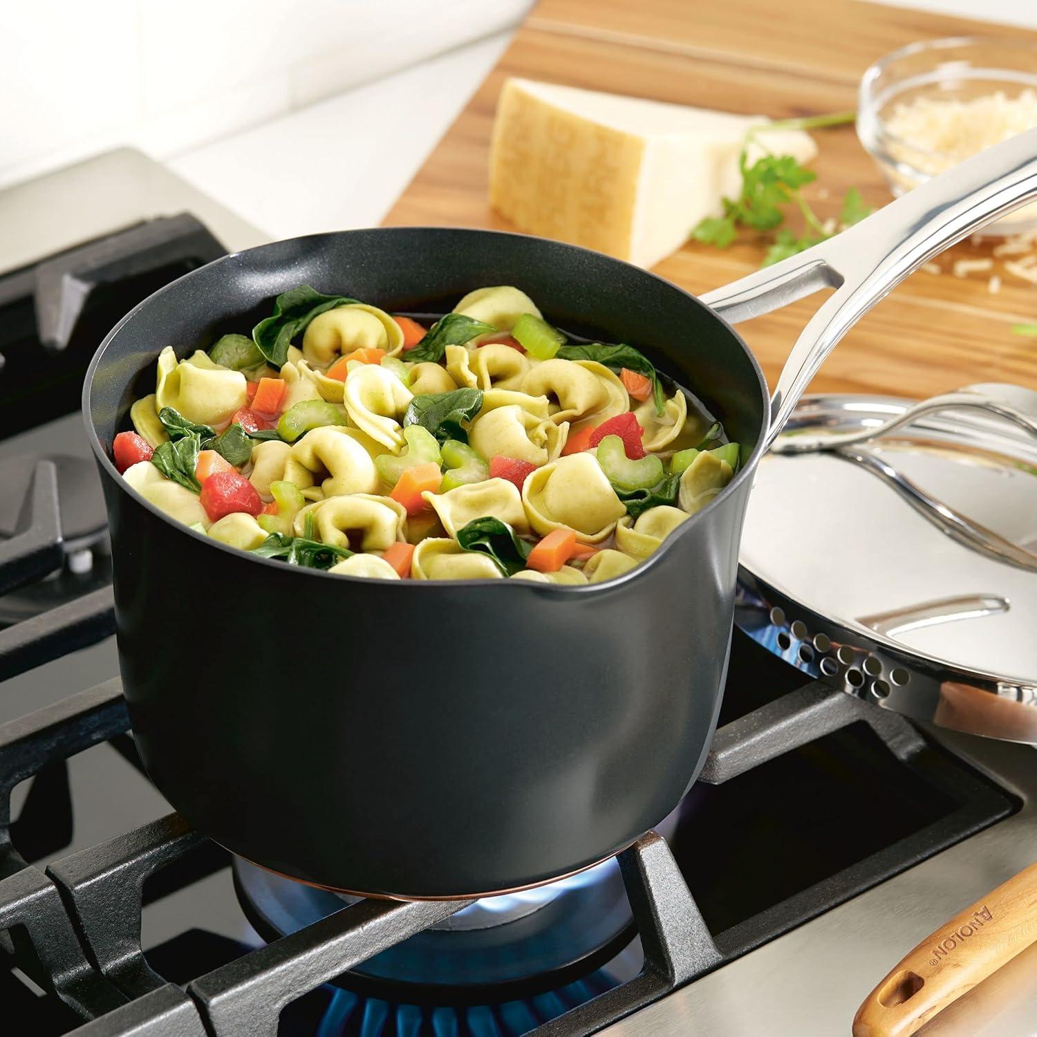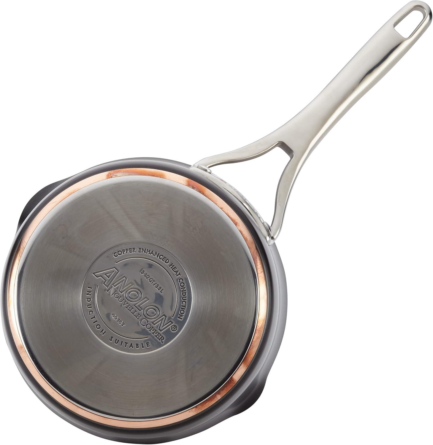 Anolon Nouvelle Copper Hard Anodized Nonstick Sauce Pan/Saucepan/Saucier, 2.5 Quart, Brown, Sable(Onyx)