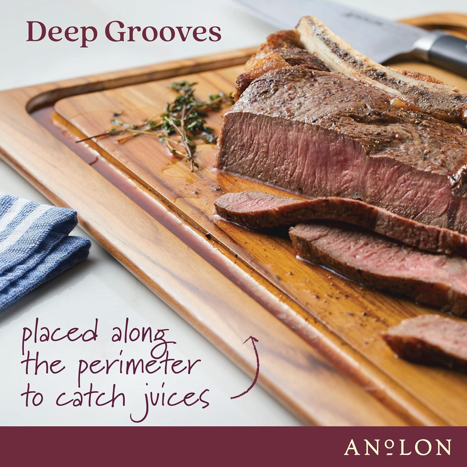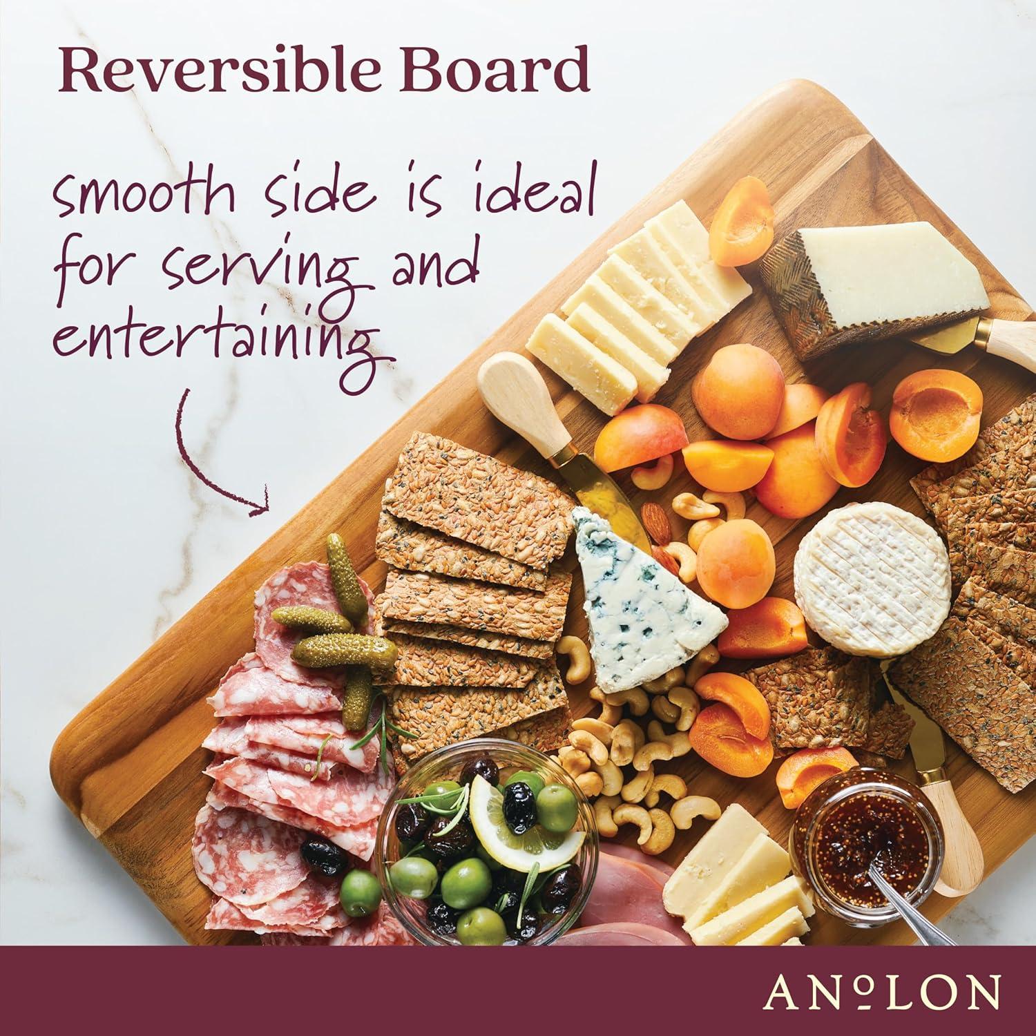 Anolon Pantryware Reversible Teak Wooden Cutting/Carving Board, 14 Inch x 20 Inch – Wood